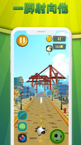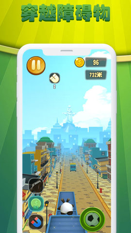 2018足球跑酷游戏是一款以世界杯作为主题的足球跑酷游戏,操作简单方便,单手就能控制,只需手指左右上下滑动即可畅玩。各种道具装备随便捡,还能边跑边射门,真是太奇妙啦!大笨熊在起跑线等你!快来加入吧!