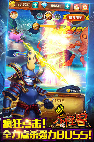 全球首款动作类放置RPG震撼登场!《啪啪小怪兽》融合了点击和放置挂机两种玩法,你从没见过的放置类玩法,可以手动去参与游戏的放置游戏!绚丽的战斗画面,丰富的游戏系统让你脱离传统无聊的挂机游戏。玩家只要点击屏幕就能斩杀怪物收集金币,通过龙宠与宝物来不断提升战力去挑战更高难度的BOSS吧!