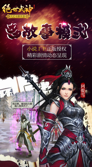 《绝世武神》小说点击量曾超越6亿。而如今由网络小说大神级作家“净无痕”经典小说《绝世武神》正版IP授权,同名手游《绝世武神OL》历经三年沉淀,憾世而出!只为给您带来最高品质的3D立体游戏盛宴!镜像还原剧情关卡,渲3D美术风格,一览角色完美形象!