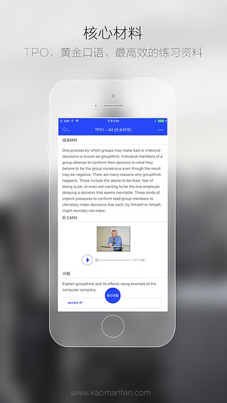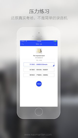 45秒,不多不少,绝非偶然,让你找到Timing的感觉!学习、练习、模考三类模式划分,真正模拟考试场景,不是简单的录音机。