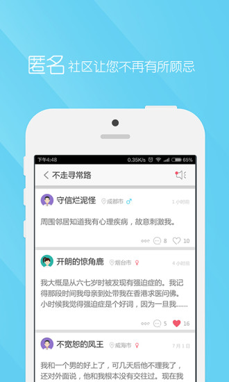 2.情感树洞:涵盖离婚、失恋、婚姻、以及奇葩心理多个分类,对号入座,清晰明了方便每一位咨询者有针对性的咨询自身所遇到的困扰,还有专业咨询师及时解惑,提供点评。