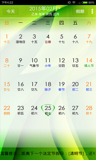 点点万年历,提供详细的节日信息,如中华传统节日、法定节假日、国际节假日等供参考