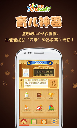 1、育儿指南/养育指南:胎儿发育、孕妇概况、妈咪营养、胎教提示、宝宝成长发育、宝宝概况、宝宝养育、能力培养、疾病预防、营养食谱应有尽有。2、微日记:原创栏目,为宝爸宝妈们准备记录的育儿日记,记录着成长,分享欢乐、分担辛劳!3、里程碑:宝宝会笑了、宝宝会走路了。他叫妈妈啦.....每一个小小的进步带来的是全家人的快乐。人生踏出里程碑的这一步,我们怎能忘记?4、疫苗计划:针对月龄的接种免疫要求,及时提醒父母,保证宝宝的健康。5、育儿专家微博:宝宝胎教、儿童早期教育、幼儿智力开发等等内容的分享,以及如何培养亲子感情。育儿问题、养儿困惑。这里有专家为您排忧解难。
