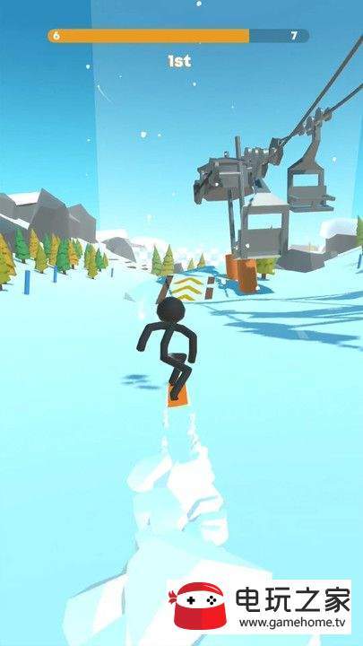 游戏的玩法十分的有趣,控制着火柴人不断的躲避障碍,一般感受美好的雪地风光,真是惬意十足。