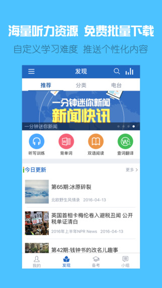 2、离线收听:离线收听节省流量,高速批量无限下载,便于随时随地学英语;