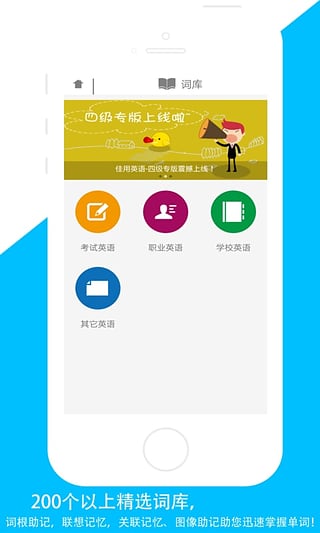 佳用英语app,为专业化的英语学习平台!佳用英语实现专题学习与单词记忆的完美结合,通过微专题,实现随时随地学英语;结合专用词库、生词衔接以及佳用独创的词库自主构建技术,完美实现学记融合,助力您的英语能力的一体化提升。