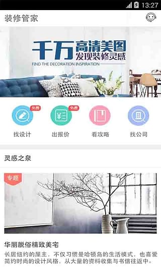 1.装修图库:(找到美图,立知装修价格)8万多张高清装修实景图,学创意,找灵感,还可迅速获得该图的装修报价。