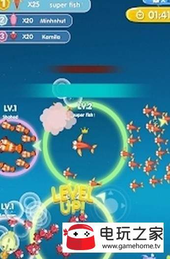Fish Go简介,Fish Go正式上线了,游戏画面清新,采用io玩法,玩家可以收集各种鱼来壮大队伍,吞噬其他队伍,在时间限制内获得分数。Fish Go玩起来停不下来,还在等什么,快来看看吧。