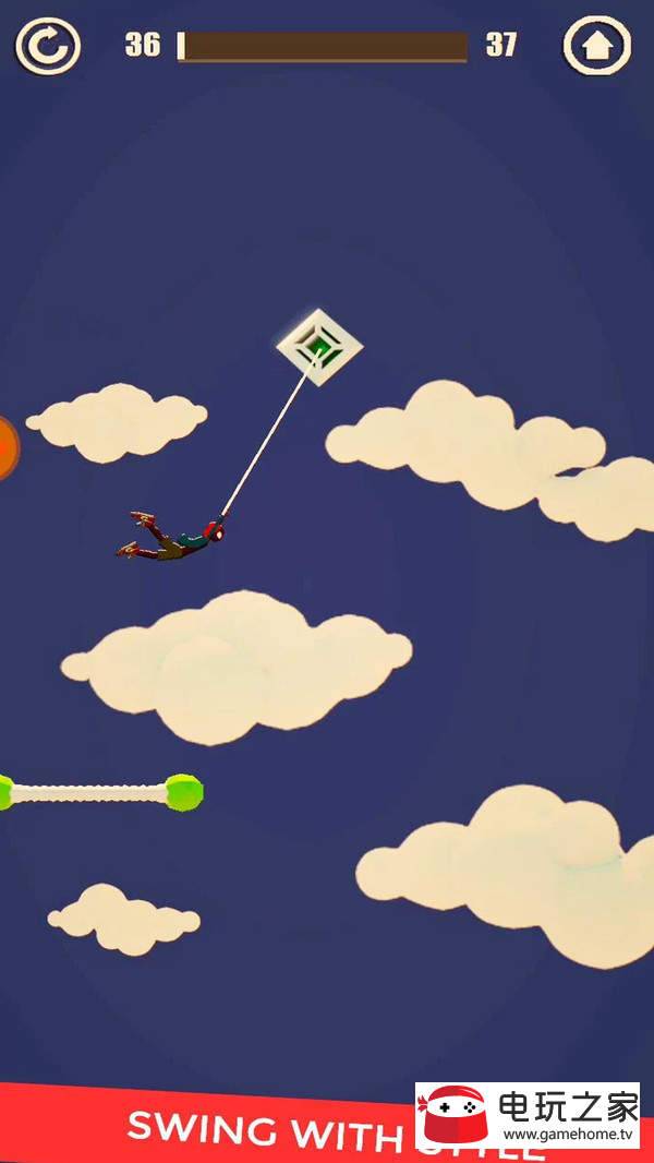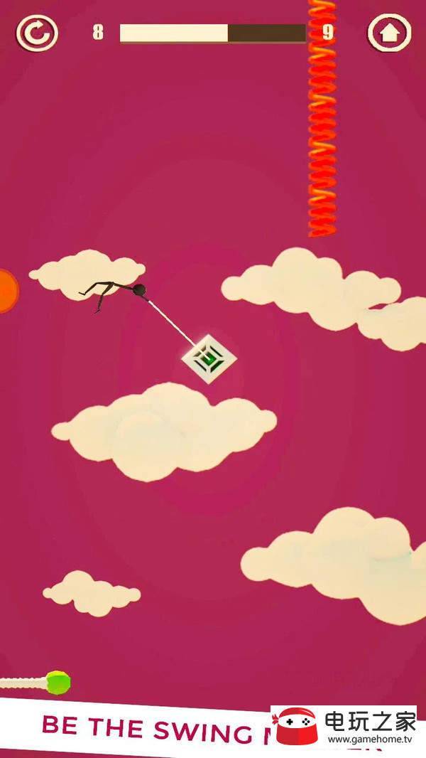 一款很火柴人的游戏,游戏中你将用不同的操作帮助火柴人进行荡秋千的动作;