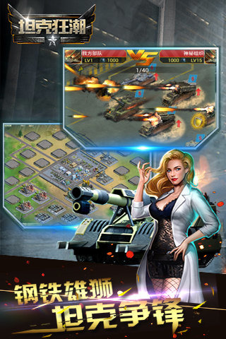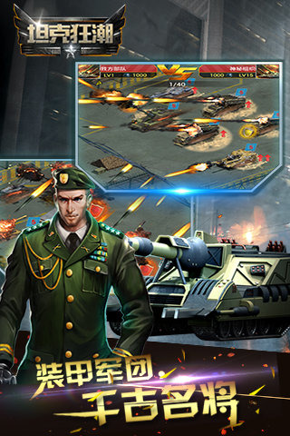《坦克狂潮》高度还原了现代战场的真实性并独创性的设计了多人PVP钢铁军团大战,世界经典战役等丰富玩法。玩家将在战乱的世界中指挥精英部队撕碎敌军防线,经历重重磨砺,利用生产和科研等体系打造自己的军事基地,与其他玩家合众连横,最终建立强大的坦克帝国,称霸全球。独创联盟新玩法,无兄弟不战斗热血联盟! 万人在线,组建强大军团,打造军事大国! 这是一个疯狂的世界,您一定会热血沸腾!!!