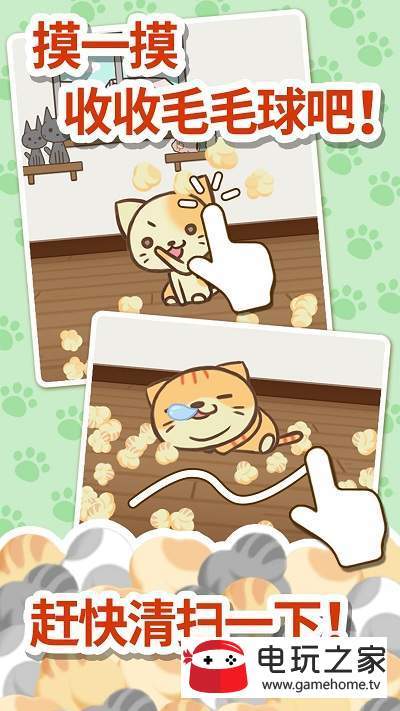 1、游戏玩法很简单,就是不断点击让猫掉毛,收集起来,再解锁新品种的猫,适合用来杀时间,不过据小编多年的养猫经验,正常情况下猫毛是不会成团掉的。