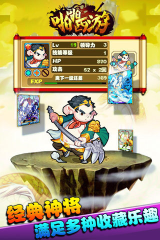 玩家通过收集养成典故中的经典神将,PVP系统、公会系统畅享战斗的快感。独具特色、充满策略性的战斗系统让玩家在掌上操控一切战局。超炫的技能释放,Q萌可爱的画面,让你爱不释手。