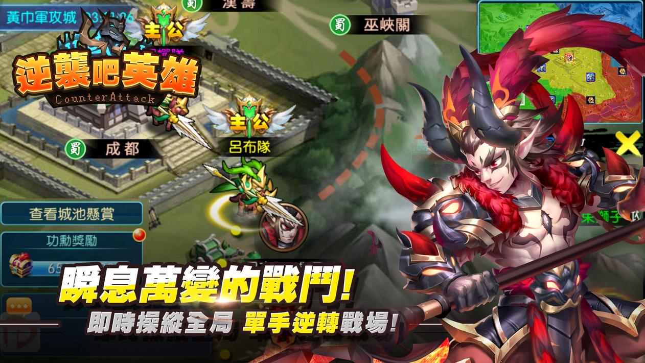 除游戏本身推进关卡的玩法以外,另有特色地图国战,需要您的运筹帷幄,有效分配队伍战力,是以爆发力强行占领敌方城池,还是以强效续战力的队伍持续打击对方进行消耗战?相信聪明的你可以根据战局变化随时调整战略搭配!