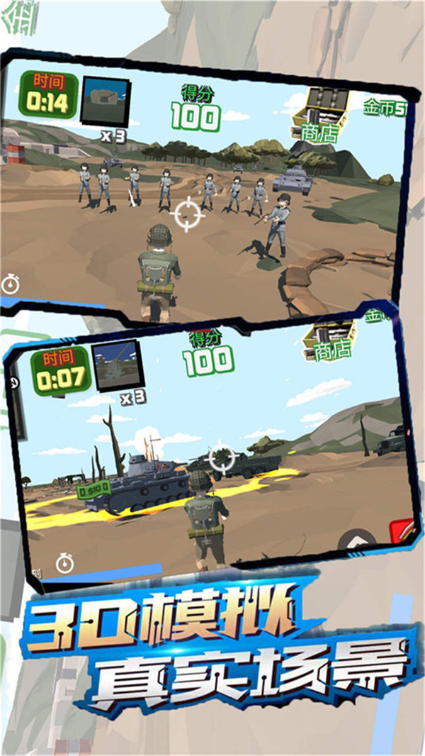 ✪ 多种种武器装备:步枪、手枪、狙击枪、汤普森冲锋枪、霰弹枪、手雷、火箭和护甲!