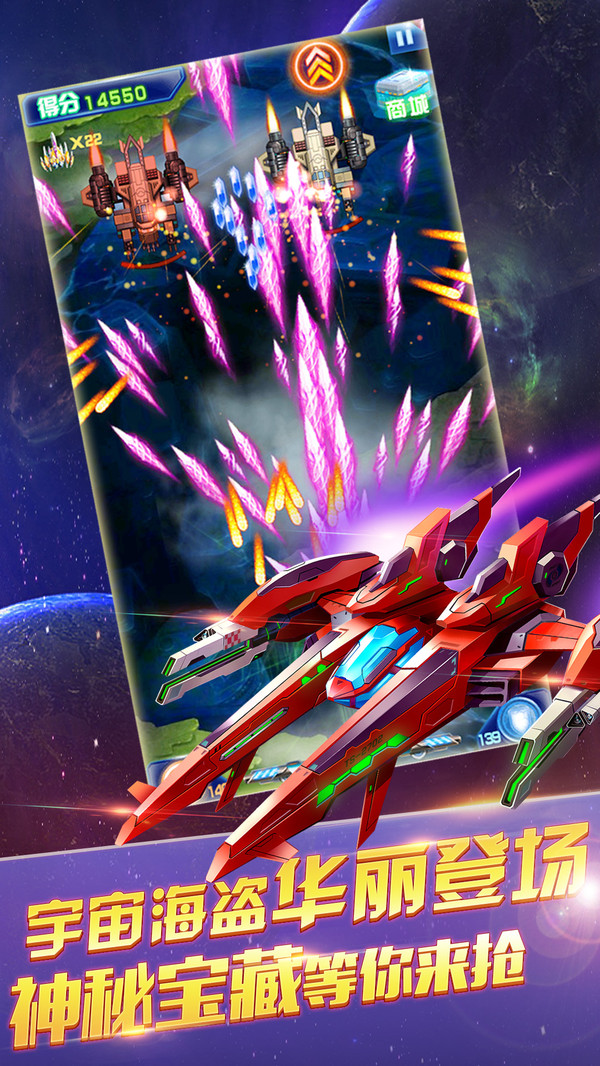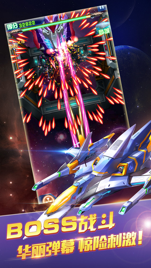 华丽的技能,超炫的弹幕,粒子光效的运用使游戏的画面表现提高到一个新的高度。让你在无垠的宇宙中与敌人展开血战。