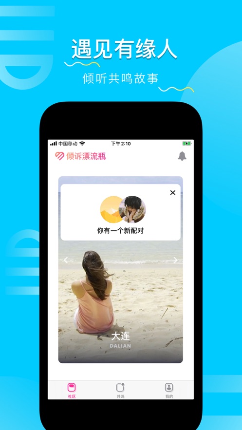3、能够快速的找到和你有缘分的用户,遇到可以跟你一起分享的人。