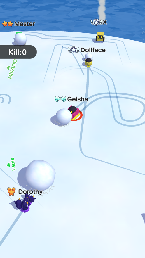 3、游戏中随着你雪球的变大,虽然速度上会减慢,但是任何雪球都将不会是你对手。