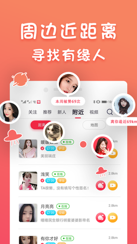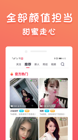 蜜柚聊吧,汇聚百万优质男女。打开app可以随时找到与你视频聊天的人,于此同时你还可以通过左右滑动完成缘分的匹配,快速找到彼此心仪的那个人,更多玩法就在蜜柚聊吧,随时随地快速恋爱。