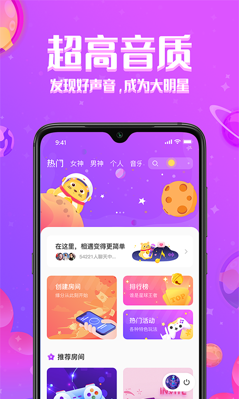 多人在线语音群聊派对,强音点唱、声控迷盛宴~