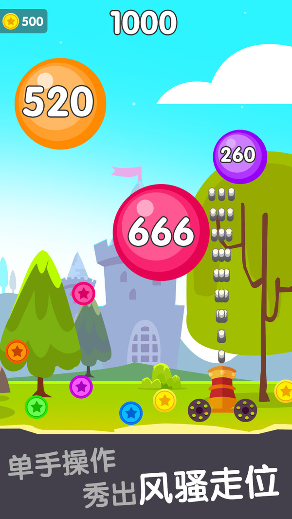 玩法简单:射击球球的同时躲避数字球球,被球球砸中则游戏失败!