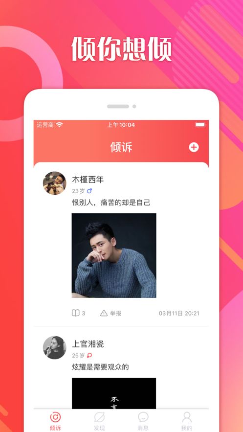 【倾诉】每天都可倾诉您想倾诉的,内容审核通过即可显示哦。
