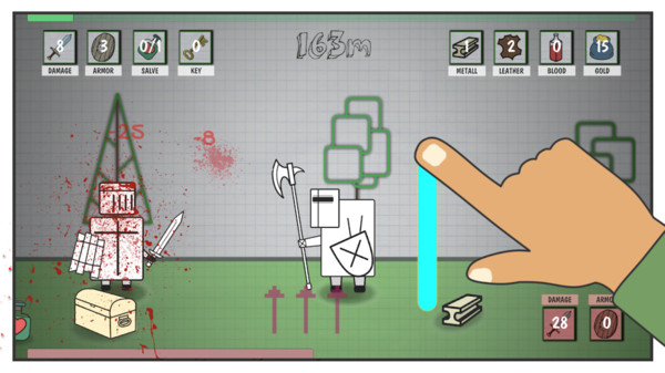 1、简笔画风格的骑士动作冒险游戏,虽然画风很简约,但是打架的时候依然看起来十分血腥。