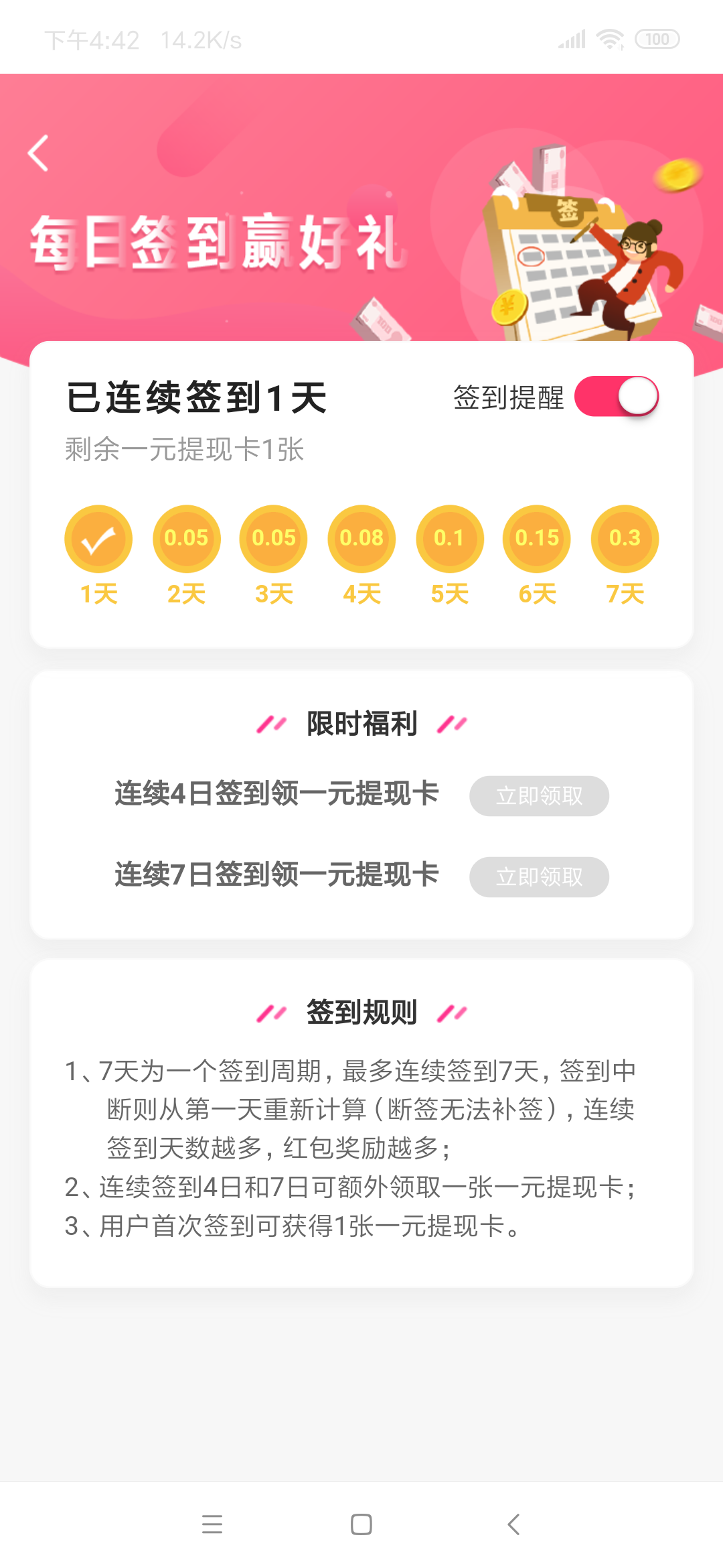 4、并且每天完成一定任务就可以获得现金奖励,奖励金可以通过微信轻松赚钱。