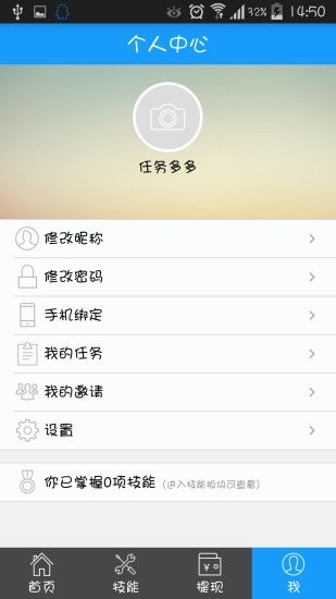 4、个人中心:用户可以修改昵称、修改密码、绑定收集、查看任务、邀请好友、基础设置等;