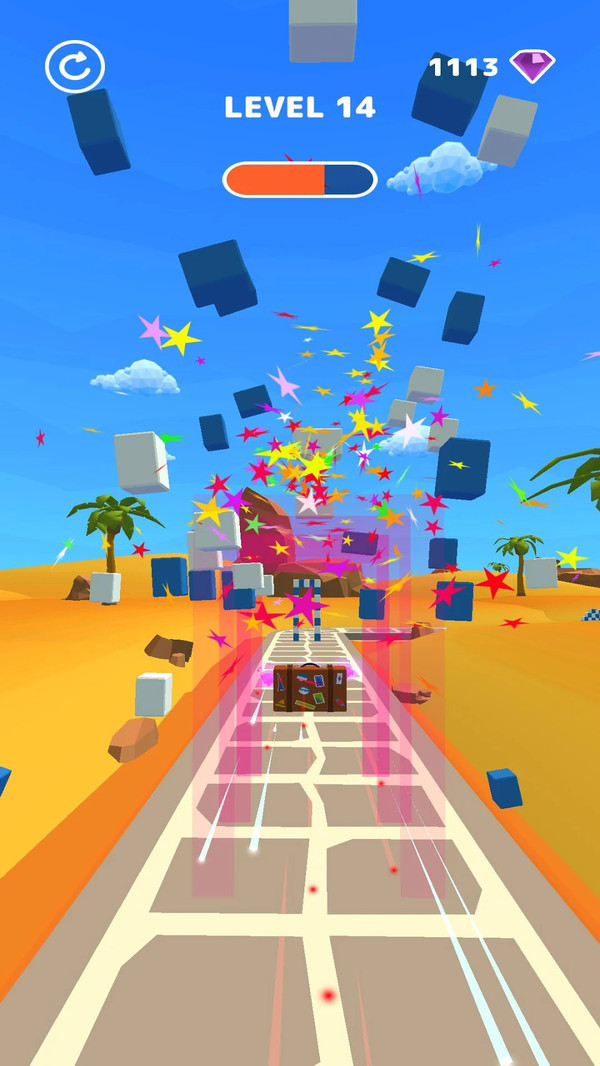 1、通过灵活改变行李箱的形状,来让其进行快速冒险闯关的惊险赛车游戏;