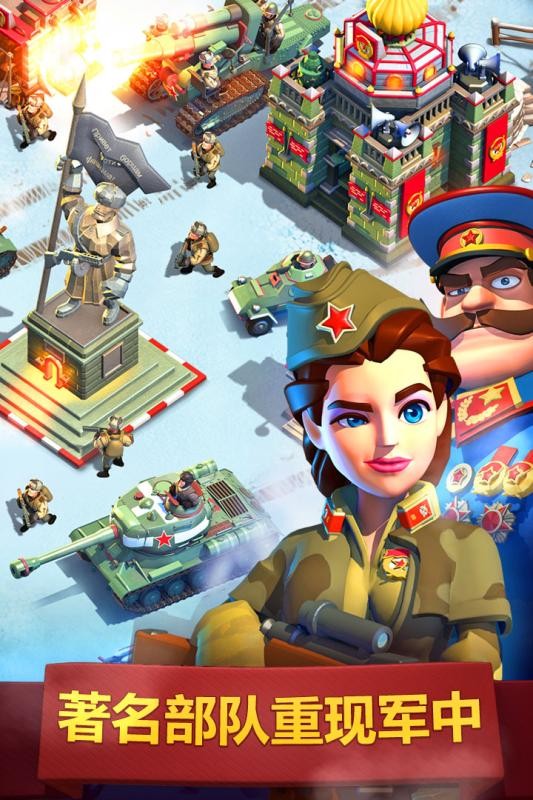《我的战争》的画风属于迪士尼经典的萌趣画风,刚一进入游戏便会被鲜明的画风所吸引。游戏中的士兵、元首、装甲车、建筑都是略带真实的夸张比例,并且非常清新萌趣,给人视觉上舒适、放松的感觉。同时,这款游戏的特色之一便是对二战主要参战国家进行特色还原,比如美国便是浓郁的硬汉风,大兵的形象都非常硬朗。而苏联的建筑和兵种都是全副武装,展现出战斗民族的好战基因。据了解,《我的战争》,美术团队全部来自迪士尼,单在这种团队组成上便已胜出!