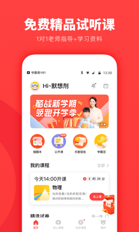 学霸君1对1是一款学习教育类app,所学进度一目了然;- 视频回放:课程结束之后,想回顾之前所学知识,点击视频即可回看课程,及时查缺补漏;- 课件回看:课上专心听讲,不必边听边记录笔记。