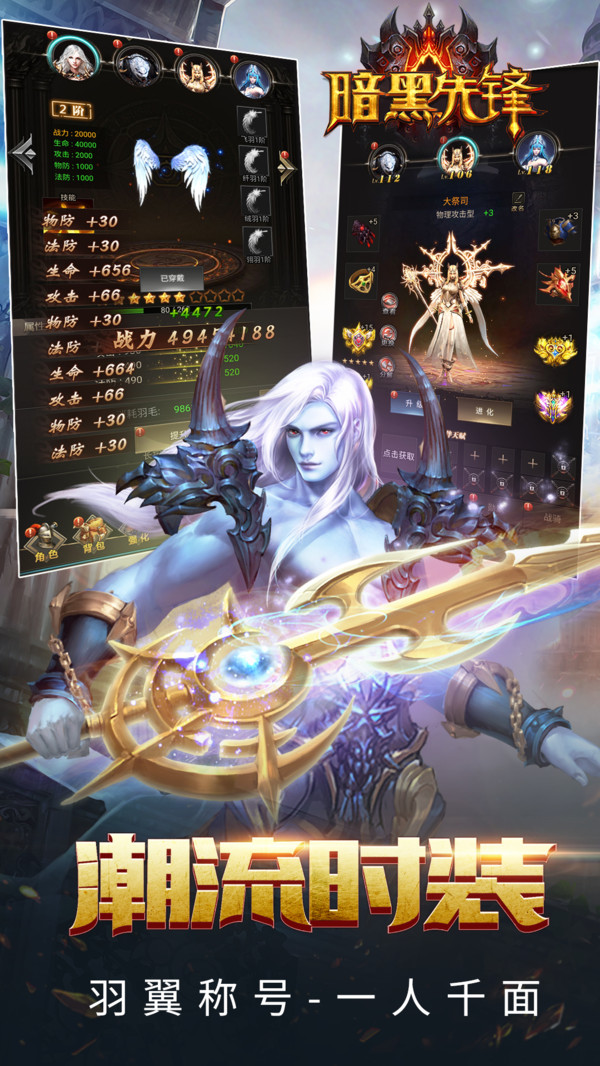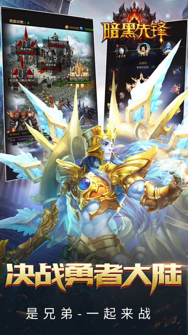 暗黑先锋是一款好玩的精心策划的题材游戏,《暗黑先锋》是一款魔幻风格的大型ARPG游戏。以人族和魔族大战为背景,您将在游戏中扮演人族勇士带领“伙伴”对抗魔族大军的侵犯。游戏包含了诸如:圣灵装备、虚空神殿、怪物攻城、公会争霸等精彩丰富的特色玩法,颠覆传统游戏单英雄战斗的体验,感受与众多伙伴一起并肩PK的畅爽快感。以华丽的战斗特效和浓厚的异域魔幻风格,展现出了丰富多彩的魔法战斗,同时集成放置类玩法,可以通过自动挂机刷怪减少升级所耗的时间