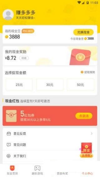 赚多多多是一款金融理财类app,不过现在主打健康赚钱模式,用户只需要每天进行走路赚钱,打卡喝水赚钱,就可以赢取丰厚的金币收益,并将金币进行转换,兑换为红包收益,极速提现,快速到账,健康塑身,外卖不愁,买菜不愁哟~