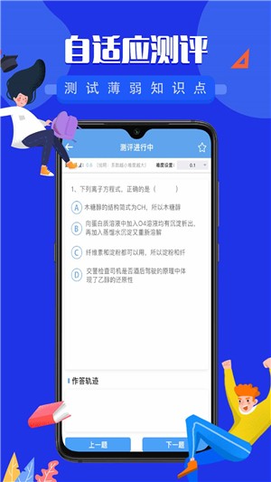 自适应测评深度融合CAT、IRT测评机制,从学科的知识点、认知层次、核心素养、关键能力等,根据学生实际作答结果动态调整测评过程。