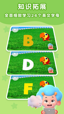 鹦鹉英语课堂,教你轻松掌握26个英文字母!按顺序依次排开字母,点击字母就会有惊喜噢。字母A可以联想APPLE苹果,字母B可以唤醒BALL球,字母F原来是FLOWER的首字母。对了,还有兔子RABBIT带着它的R来咯~快来和小鹦鹉老师一起探索其他的字母吧!