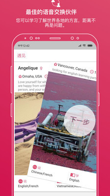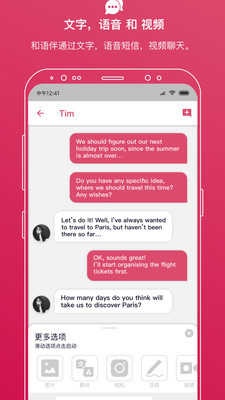 平台上面主打的学习理念就是要多多开口说话,说的越多掌握的也就越快,不仅如此,平台上面甚至可以学习了解到世界各地的方言,让距离不再是问题,用户也可以在这里和自己的小伙伴进行文字、语音或者视频聊天,想要学习外语的用户快来试试吧!