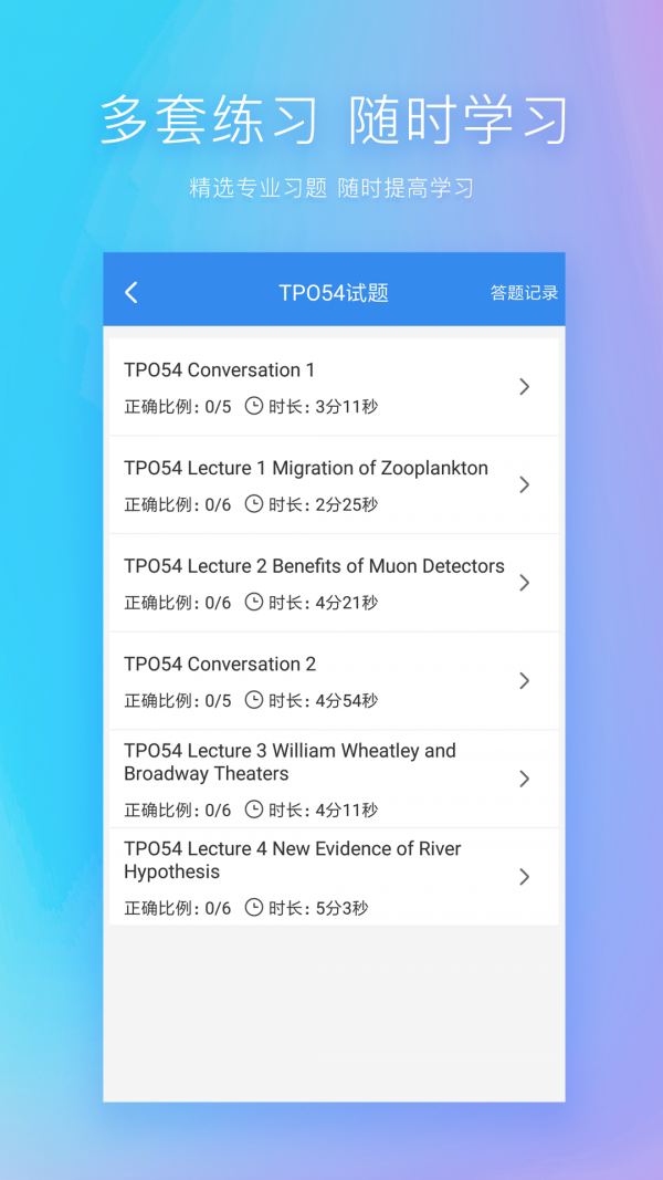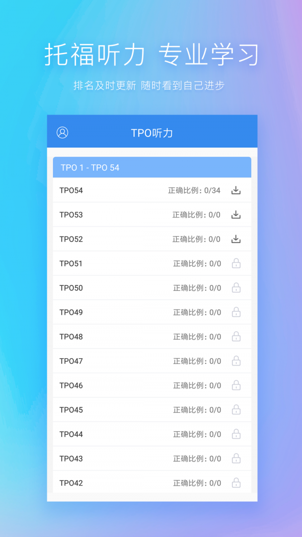 2.新增听力评测和排行榜