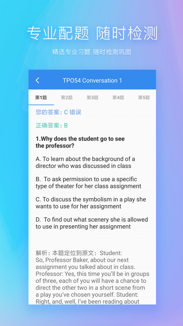 托福听力是一款学习教育类app,涵盖了托福听力考试的方方面面,,听力题型具有典型性。提供题目收藏,原文同步,后台播放等功能,让你学习更轻松,更高效,堪称托福考试的“神器”。