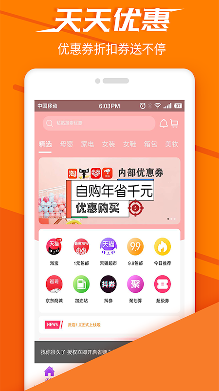 一站式导购应用软件!用户在这里购买商品是十分方便的,不仅商品种类多,而且还有更多的优惠,所以购买起来会比较省心省力,在这里一年所领取的优惠券就可以让你再节省出千元,是不是又可以买两个不错的包包了,来 派店,每天都会有优惠券,各种优惠券折扣券送不停!