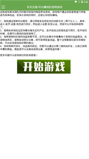 欢乐庄园app中用户需要抢宠物从而获得收益,通过算法每天定时产出宠物,你可以预约进行领养,抢先一步,让你轻松赚钱。
