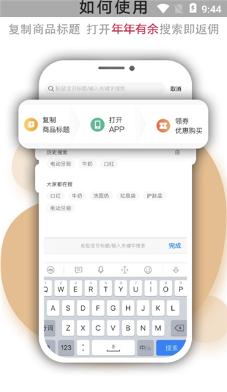用户可以在这里轻松进行购物,这里丰富的不仅是商品种类,同时还有商品优惠券,各种大额优惠券在这里都可以轻松找到,只需要复制商品标题在这里进行搜索就可以了,是不是超级简单,对了,用户还可以加入到合伙人,这样还可以轻松赚钱呢!