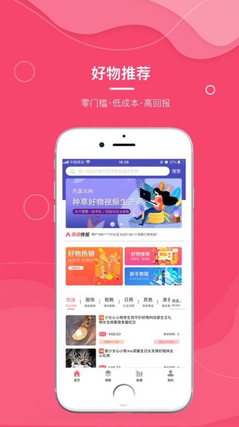2、也能自己拍摄短视频来赚到佣金,让你在家闲着没事也可以做任务;