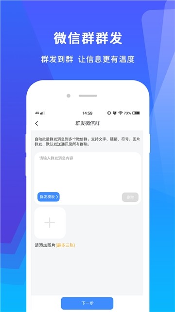 它可以为微商们提供高效率的服务,软件包含了图文群发、检测僵尸粉、群发微信群等功能在内,让微商能够快速的给自己积攒人脉。软件操作起来也非常的简单,界面设计的都很不错,并且占用手机内存不大,有喜欢的朋友千万不要错过,快来下载吧!