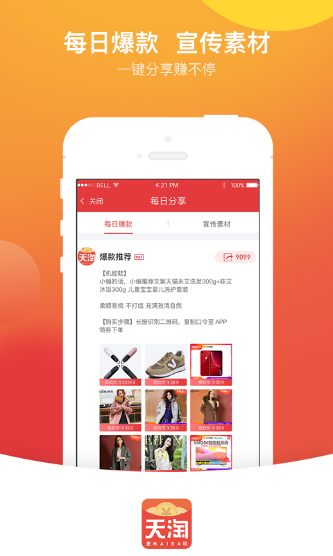 天淘麦坝app聚集各大网购优惠卷+佣金商品,每天同步更新。
