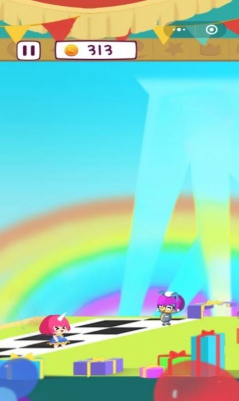 1、游戏发生在一个快乐的乐园里,里面的人喜欢去冒险,躲避各种障碍,比一比谁能走得更远。
