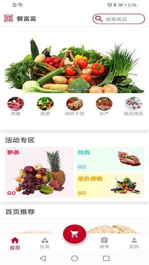 各种蔬菜、水果、肉类家禽、水产品、调味品等等用户都可以在这里选购到,而且平台上面配送很快,最大程度保证蔬菜的新鲜度,平台上面也经常会有一些秒杀、抢购等活动,虽然很划算,但是批发购买更实惠哦!