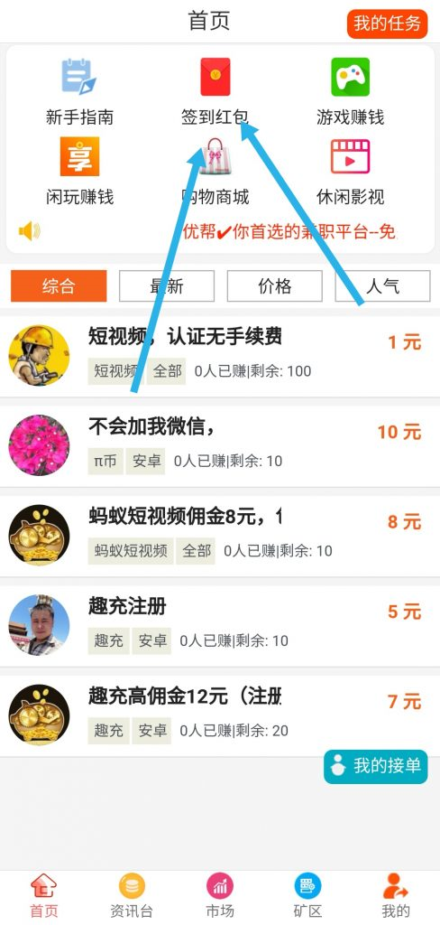 优帮软件将做任务赚钱和挖矿相结合,每天不仅可以利用闲时来找任务玩手机赚钱,并且实名注册优帮还能获得矿机。