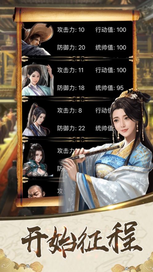 玩家可以在游戏中收集很多的武侠人物,它们都有自己的攻击力和防御力,还有一些血量以及统帅值,在这个还没有开发的土地上还有很多的势力,玩家需要购买更多的武侠人物来帮助你征战天下,不断的战斗也可以升级它们的属性。