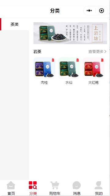该软件中的茶叶分类非常丰富详细,包含岩茶、肉挂、水仙、大红袍等等,还有很多的打折促销活动。