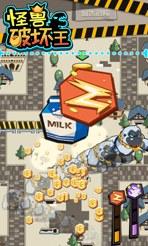 怪兽破坏王是一款卡通风格的冒险闯关类的游戏,不同的怪物有着不同的力量属性和技能搭配,玩家可以选择自己最喜欢的那个怪物着重培养;玩家可以利用怪物的狂暴模式来摧毁前进路上的一切物品,快速获取各类资源;玩家需要摧毁的城市都是随机生成的,玩家也无法预料到会出生在什么城市。